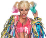 - Iconic Design: Blonde wig with short pigtails, one pink and one blue, capturing Harley Quinn's unique style.