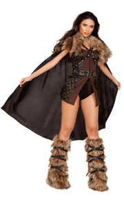 The Northern Warrior Costume is ideal for those who want to combine the rugged charm of the North with the valor of a true warrior. With its front slit dress, faux fur accents, velvet shorts, and detailed cape, this costume will ensure you stand out as the ultimate Northern hero. Whether you're leading a raid or simply enjoying the festivities, this outfit is sure to make you the center of attention.