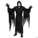 - Full-length hooded black robe with tattered hem and draped sleeves