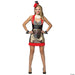 Elevate your pirate ensemble or add a splash of fun to any themed party with our Women's Rum Dress Costume, exclusively available at Costume-shop.com. Perfectly designed to pair with a cola drink costume or complement any pirate look, this stylish and fun costume is sure to make a memorable impression at your next event. Featuring a fitted sleeveless black and red dress adorned with printed gold labels, ruffled wrist cuffs, a matching collar, and a chic mini red pirate hat with a feather, this ensemble captures both elegance and adventurous spirit.