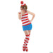 Transform into the elusive character everyone loves to find with the Sassy Waldo Dress Costume from Costume-Shop.com! This playful and sassy take on the classic “Where’s Waldo” look is perfect for those who want to combine nostalgia with a touch of flirtiness this Halloween. Featuring the iconic striped tank top paired with a blue mini skirt, this costume captures Waldo's signature style in a fresh, feminine way. Complete with striped stockings, a matching hat, and glasses, you’ll be both a mystery and a standout at any costume party.