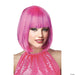 Get ready for your hair to look great! Includes: Red Stylish bob-style shimmering wig. Available Sizes: One Size Fits Most. Please note we cannot accept wigs for return unless they are in their original packaging, unopened, and sealed. Remember a wig cap (sold separately) to hold in your own hair.