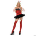 Petticoat tube dress, polka dot stockings with daisy applique, bug headpiece and translucent wings.