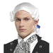 Go back in time with this historic 1800's powdered style wig with curled sides and ponytail with bow. The perfect costume wig for those wishing to be 19th century royalty for Halloween.