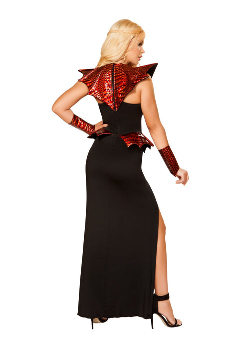 Includes Maxi Length Dress with Dragon Style Criss-Cross Detail and Attached Wings