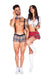 Embrace your inner geek with flair in the Hunky School Nerd Costume, now available at www.Costume-shop.com. This playful and provocative men's costume is a fun twist on the classic nerd look, ideal for Halloween parties, costume events, or just a humorous night out. The three-piece set includes tight-fitting shorts that show off your physique, quirky suspenders that add a touch of traditional nerd charm, and a collared tie that completes the scholarly appearance. Designed to spark laughter and a bit of cheeky fun, this costume is perfect for those looking to make a memorable impression.