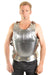 Made from 18 gauge polished silver steel with adjustable leather straps on shoulders and sides. Fluted apron for added strength similar to the armor types from the Gothic period. 25 inches tall, 17 1/2 inches wide at underarm, 4.8 lbs.