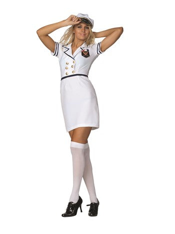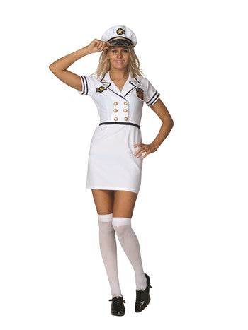 Sail into style with the Ava Navy Pinup Dress with Hat! Perfect for Halloween, parties, and themed events. Available in size 8-10. Ships from Los Angeles. Shop now at Costume-Shop.com.