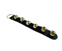 - Includes: 19" long black strap with six polished brass jingle bells and a golden hanging ring