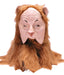 Over-the-head mask from a childhood favorite, Wizard of Oz. Face front is latex. Lower jaw area is cut out for ease of talking. Attached plush fur covers back of head in a golden lion mane.