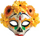 Celebrate Día de los Muertos in style with the Day of the Dead Female Mask with Flowers. Perfect for Day of the Dead parties, Halloween, or any festive event, this beautifully designed sugar skull mask eliminates the need for makeup while providing a stunning and authentic look. The mask features five vibrant yellow flowers on top, adding a touch of elegance and color to your outfit.