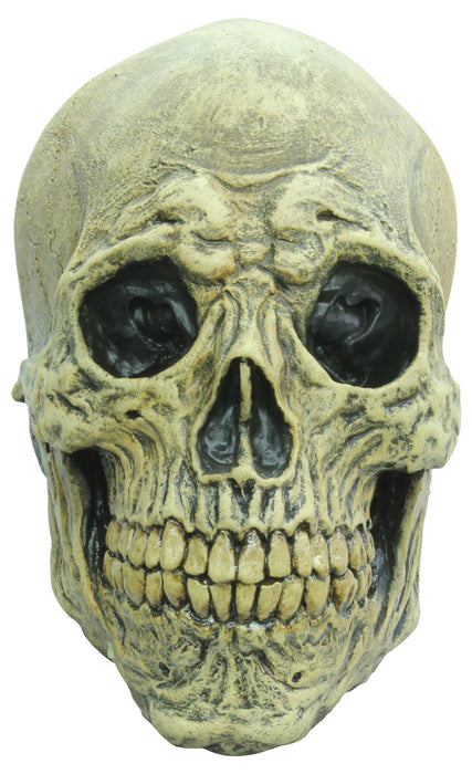 Natural bone look skull with wrinkled detailing. Full over-the-head latex mask. Individually hand painted for the most realistic look possible. Mask openings: eyes, nose.