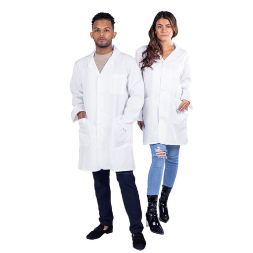 Available in a range of sizes including small, medium, large, and extra-large, this lab coat is designed to accommodate various body types, ensuring a comfortable fit for all. It's made from easy-to-care-for materials, allowing for simple washing and drying, so you can maintain its pristine condition with minimal effort.