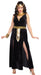 This exquisite Queen of the Nile always leaves them with a smile. Become the queen of desire in this black velvet gown with Egyptian embossed pattern, front slits and gold trim detailing. Includes Egyptian sequined collar and belt. 100% polyester. Fits adult womens xxlarge sizes 16-18.