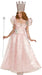 Beautiful deluxe Glinda costume starts with an exquisitepale pink floor-length gown with a sheer glitter overlayerpuffed upper sleeves with sheer lower sleeves, andbutterfly accents at waist and upper bodice. Tall deluxeglitter crown is included. Add your own star wand.Adult standard fits women up to size 12.