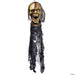Terrifying even without a torso! This life-sized head looks like the flesh has been torn away. A spectacular skull decoration for your Halloween party, it features attached hair and the ragged remains of his tattered burlap suit. Don't lose your head when you encounter this horrifying vision in a dark corner on fright night! Vinyl. Top of head to bottom of cloth measures 29".