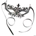 Includes: Plastic laser cut mask with matte black finish and ribbon ties.