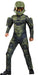 Master Chief Classic Child Halloween Costume. Go to combat in any war with this intimidating costume. Includes jumpsuit with green armor-like printing. Half mask made of hard plastic with gold visor. Shoulder pad design for added armor look. 100% Polyester. Care instructions: Hand wash cold separately. Do not bleach. Line dry, cool iron if necessary.