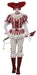 Unleash the terror of the circus with the Sadistic Clown Costume from www.Costume-shop.com! Crafted for those who love a good scare, this costume is a show-stopper at any spooky gathering or Halloween event. Featuring a red and white striped shirt with a deliberately distressed look, this costume sets a chilling tone. Paired with stark white pants and a matching red and white striped skirt, the ensemble is both striking and unsettling. The costume is completed with a classic clown collar, enhancing the eerie persona. Note that the wig and weapon are not included, allowing you to customize your frightful look further. Made from high-quality materials, this costume promises both impact and comfort.