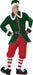 This complete costume set includes a flocked velvet jacket, matching pants, a belt to cinch the look together, a hat adorned with faux fur trim and a playful bell accent, stripe knee socks, and shoe covers that also feature bell accents to jingle all the way. The intricate details and festive colors make this costume a standout choice for anyone looking to embody Santa's most helpful workshop assistant.