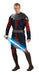 Tunic with armor look detailing, pants with attached boot tops and belt.