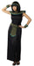 Sheath dress with front slit, black gold lame collar, cuffs, and belt, and includes headband. Adult standard fits sizes 4-14.