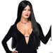 A great wig to finish off your costume for Morticia from the classic TV show Addam's Family. Black long wig. One size fits most. Adjustable and breathable. Silky-soft imported fiber. Shampoo washable. 100% Kanekalon with lace wig cap anda skin part.The Addams Family Characters ©Charles Addams with permission of Tee and Cjharles Addams Foundation.