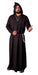 Deluxe cloth polyester robe with hood. Pull-over robe with cloth tie fastener at neck. Robe includes a cord belt. One size fits most adults size 36-46. Heavy weighted robe. Measures 59 inches from shoulder to hem. Should be full length for 5ft 11in height. Washing instructions: machine wash, gentle care, line dry, do not use bleach.
