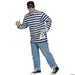 Burglar Plus Size Costume. This bank robber is out for a steal! Costume includes: Black and white horizontal striped shirt, black cap, eye mask, and money bag. Available Sizes: Extra Large -fits up to 6 ft. 2", 300 lbs. Pants and shoes are not included.