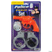 Just the accessories you need to become a great policeman! Includes: Pistol, badge, and handcuffs with keys.