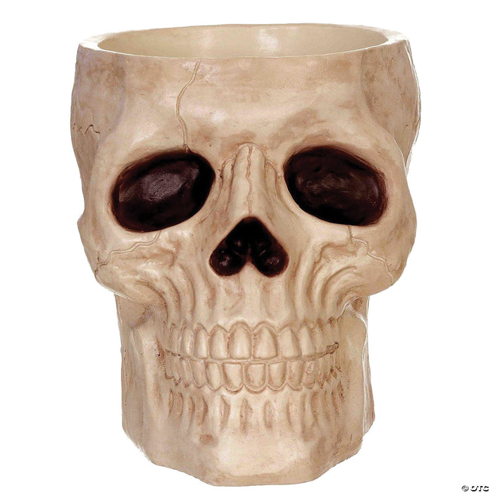 Kids might just think twice before taking all the candy from this skeleton bowl!. Includes: Plastic skull with open head top for placing candy inside. Measures 9.5W X 7.625D X 8.5H IN.