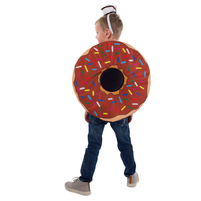 DESSERT HAS A NEW FRIEND! This costume is a definite eye-catcher and perfect for any fun occasion. The Sprinkle Doughnut Costume comes with a designed tunic featuring chocolate frosting and colorful sprinkles, along with a matching headband. Great for Halloween, parties, and year-round play, this costume will make your child the sweetest treat in the room.