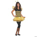 A fun costume idea for Halloween this year is the Busy Bee costume for junior women. Feel great and have a buzzing fun time when you dress up in this quirky costume for the next Halloween gathering! Featuring a cool tutu skirt with fiber optic lights, you can totally shine and be awesomely cool in this fancy costume. It comes with wings, antennae, lots of glitter and a cute black and yellow striped dress with foam padding for a comfortable fit. Dazzle your friends in this darling costume. Polyester.
