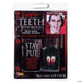 Vampire Teeth with Blood. Great for your next vampire or vampiress costume! Includes: One pair of vampire teeth with bloody tips. Custom-fitting compound included. Fangs will fit exactly to your mouth. Reusable.