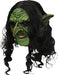 Full over-the-head chinless latex mask of frightening goblin. One size fits most. Comes with attached hair.