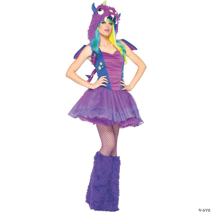 Do you have a Halloween costume party to attend and want to be sure to get noticed? Dress up in this Darling Dragon Costume For Women and all eyes will turn toward you. Darling Dragon Adult Costume includes purple petticoat dress with attached purple furry dragon hood, attached spiked tail and Velcro wings. Wig, fishnet tights and furry leg warmers sold separately. Fits sizes 4-8.