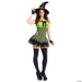 Costume includes: Green and black tutu dress, witch hat, black fishnet glovelets, and thigh highs.